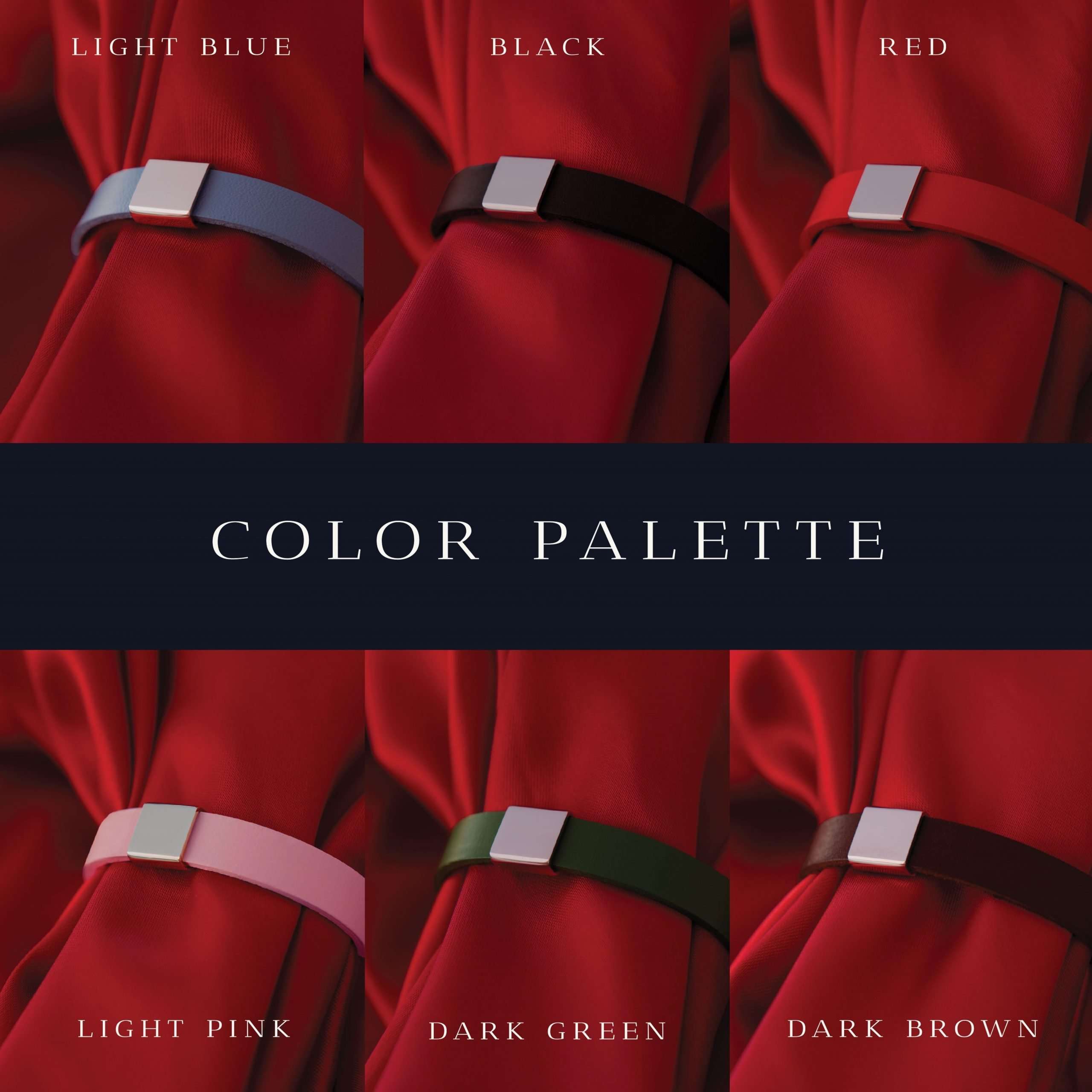 ▸ Bandfarben: Hellblau, Schwarz, Rot, Hellrosa, Dunkelgrün, Dunkelbraun